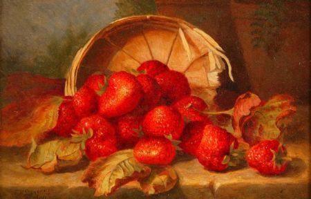 | Still Life Study of Strawberries by a Basket on a Stone Ledge | |