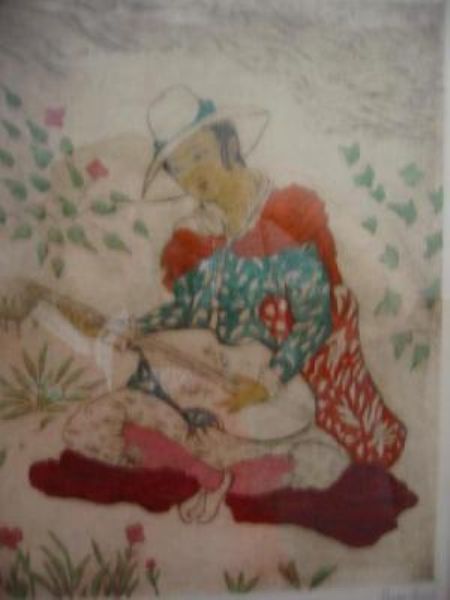 Etching hand-coloured