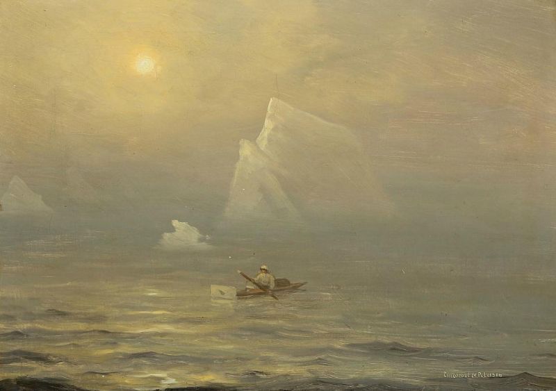 | A Greenlandic hunter in his kayak on a hazy day | |