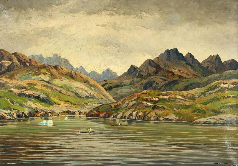 | A kayak oarsman in a bay by Angmagssalik, East Greenland | |