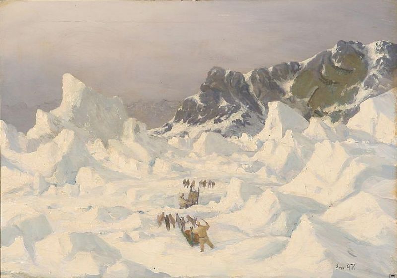 | Inuits and their sled dogs in high speed over the Greenlandic ice | |