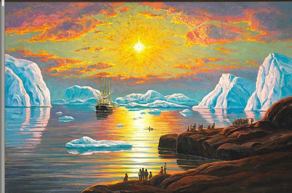 | Midnight sun, Greenland. A ship is welcomed. | |