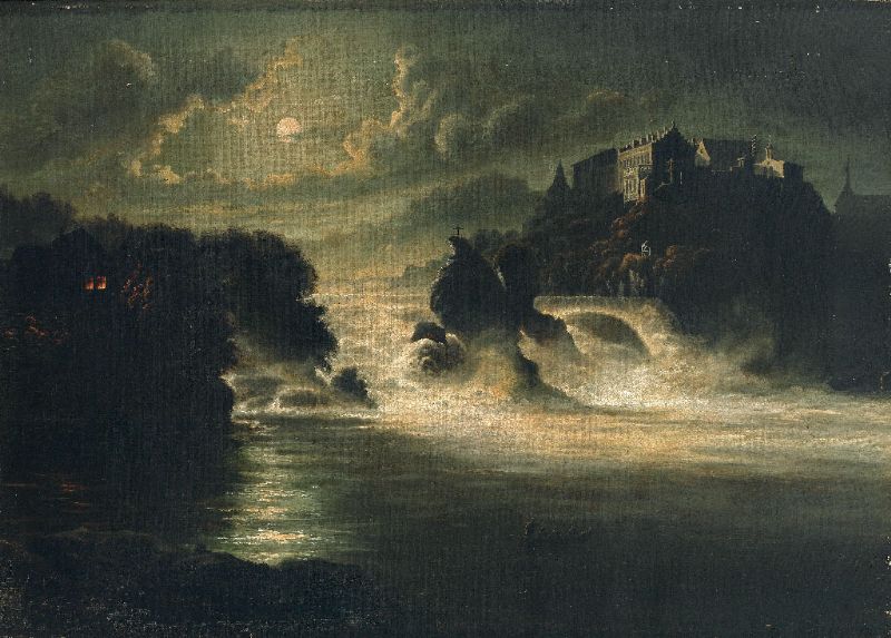 Zugeschr. Der Rheinfall bei Schaffhausen im Mondlicht.