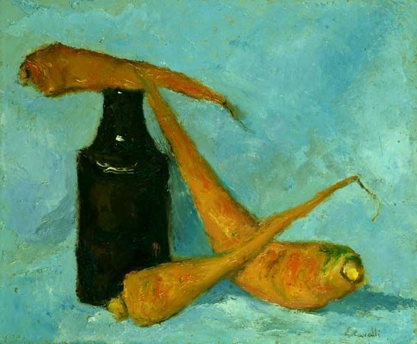NATURA MORTA CON BOTTIGLIA E CAROTE