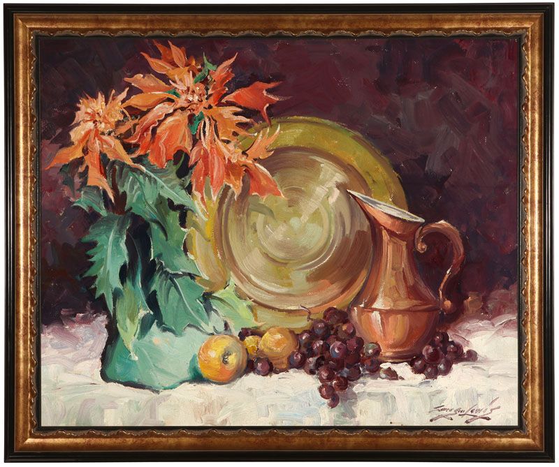 Still Life with Copper Charger, Pitcher and Poinsettias
