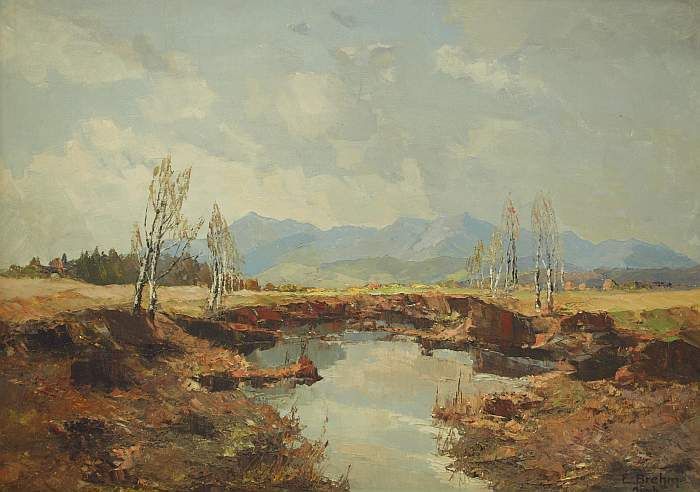 Moorlandschaft , im Hintergrund Blick auf die Bergkette der Voralpen