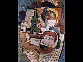 KUBISTISCHE KOMPOSITION MIT WEIN, FRUCHTSCHALE UND LAUTE