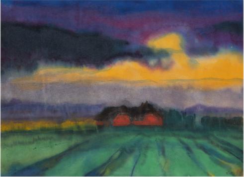 | MARSCHLANDSCHAFT UNTER HOHEM HIMMEL MIT HOF SEEBÜLL (MARSH LANDSCAPE UNDER HIGH SKIES WITH HOF SEEBÜLL) | |