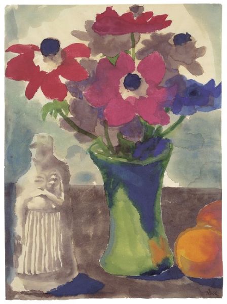 STILL LIFE WITH ANEMONES, ORANGES AND SCULPTURE
