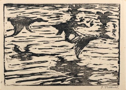| Kleines Konvolut von Wasservögel-Darstellungen und einem Selbstportrait. | |