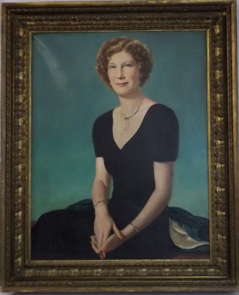 | Portrait of Mrs Gertrude Maconochie, half length in a black dress against a green back-ground | |