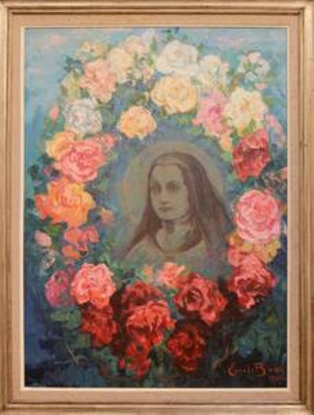 Heiligenportrait in Rosenranken