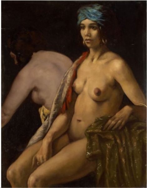 FEMMES ORIENTALES, L'UNE AU TURBAN BLEU