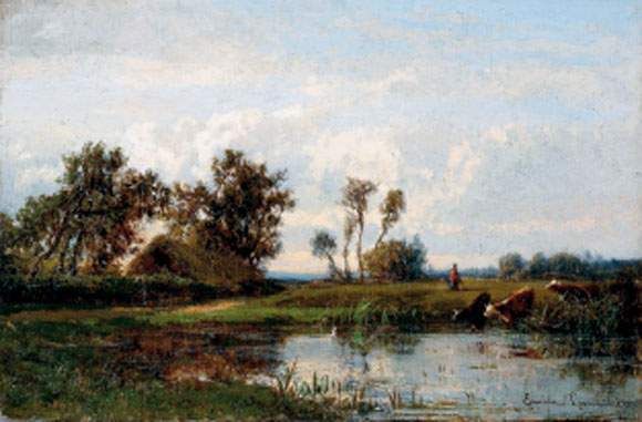VACHES S'ABREUVANT DANS UN ÉTANG