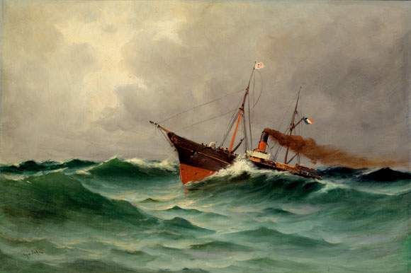 Bateau à vapeur dans la tempête