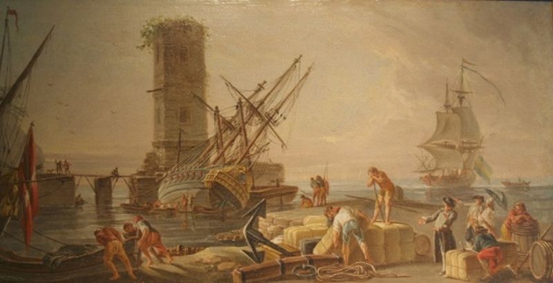 | Harbor Scene with Men Unloading a Capsized Ship | |