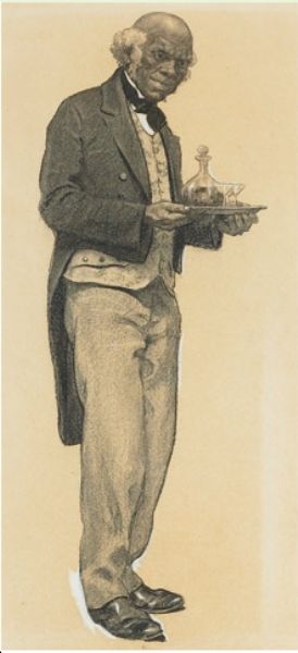 | Charcoal drawing on paper laid down on a working board support heightened with white | |