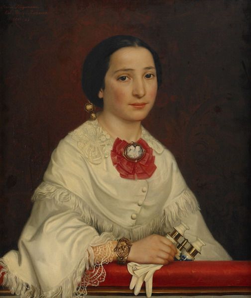 | Porträtt föreställande Maria Dominica Ricci, gift Plagemann, sittande i teaterloge hållande kikare | |