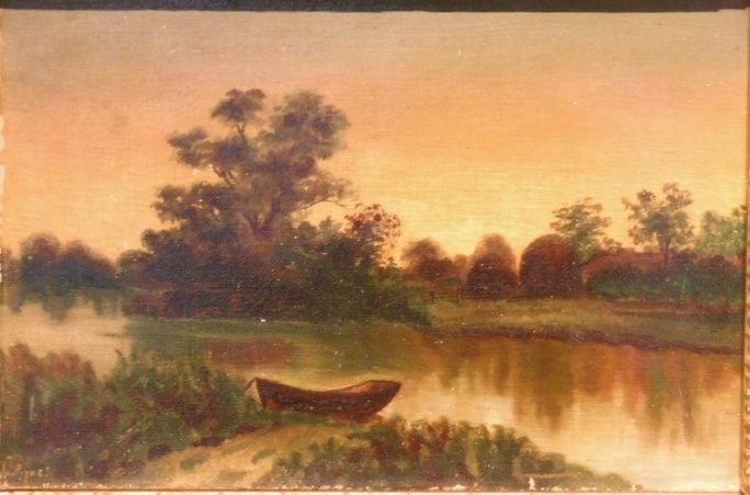RIVER SCENE WITH BOAT