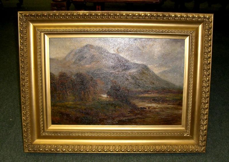 Highland Landscape and Highland Loch with Boat in the Foreground