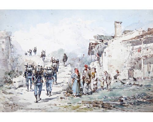 Chasseurs Alpins traversant un pont
