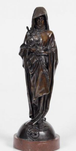 A FINE FRENCH BROWN PATINATED BRONZE STATUETTE OF A VIRGIN