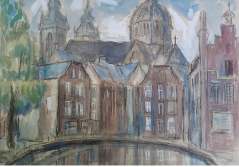 Bridge over a canal with buildings