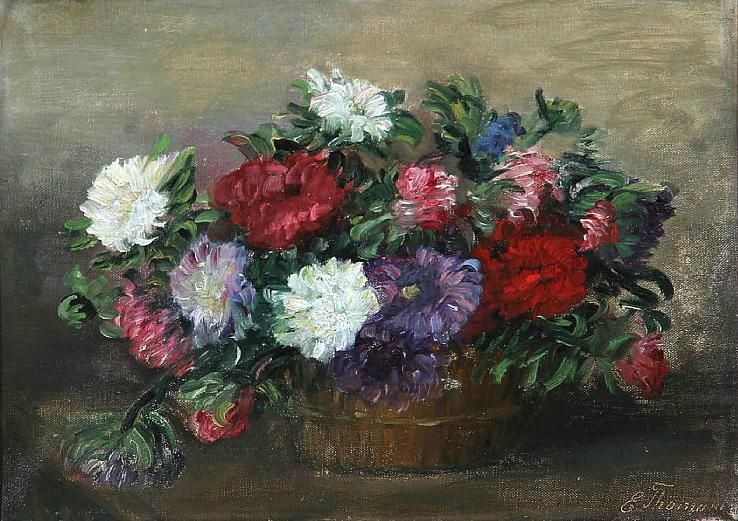 Still life with flowers in a basket.