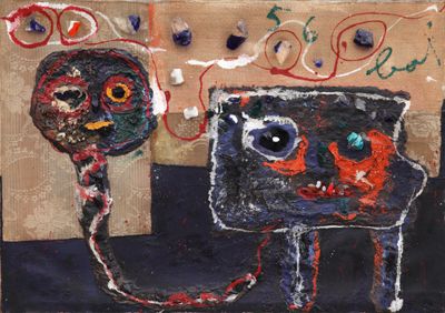 | Oil oil, collage, glass, stones, tar, padding, fabrics on canvas | |