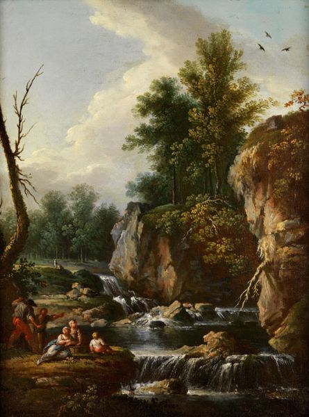 FLUSSLANDSCHAFT MIT RASTENDEN AM UFER