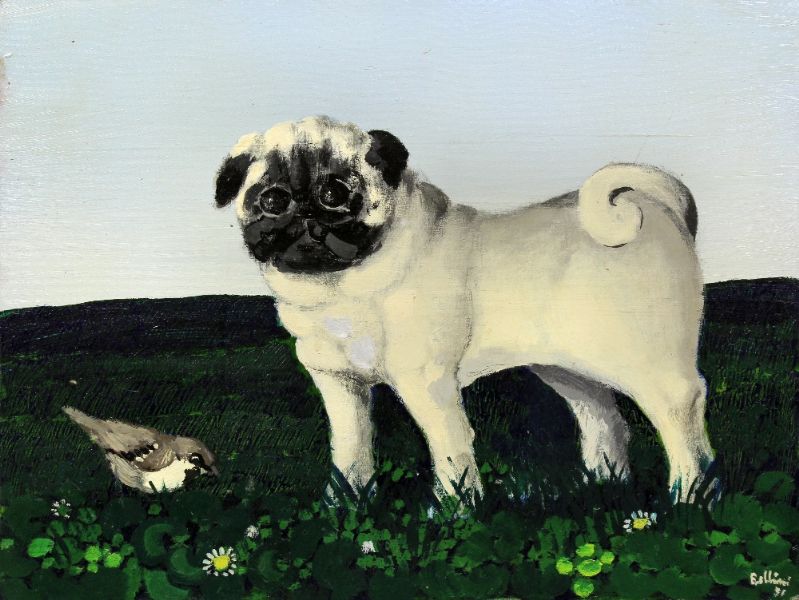 Study of a standing pug dog