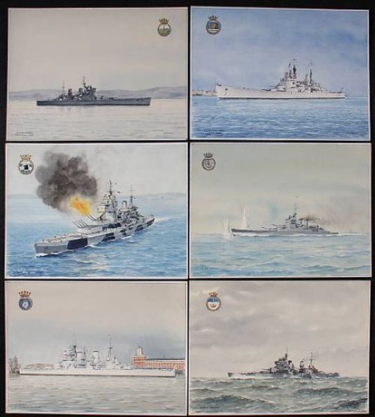 | H.M.S. Anson" Gareloch. 1952"; "H.M.S. "Vanguard" May 1953 Portsmouth"; "H.M.S. "Howe" July 1943"; "H.M.S. "Renown""; "H.M.S. "D | |