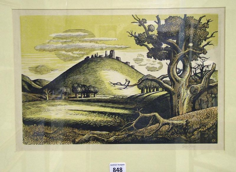 Landscape with a ruined Castle, possibly Corfe, upon a hill