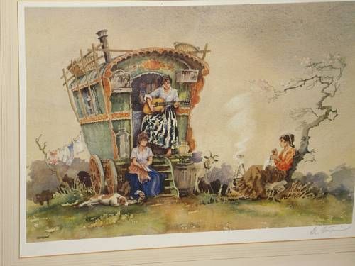 | Gypsy girls seated before a caravan, and another similar, a pair | |