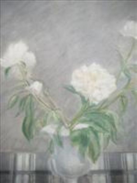 Still life of flowers in a campana shaped vase