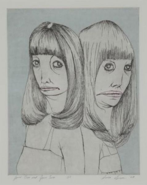 JANE ONE AND JANE TWO; BEADED NECKLACE; PINK GLOVES; GIRL WITH FLOWER