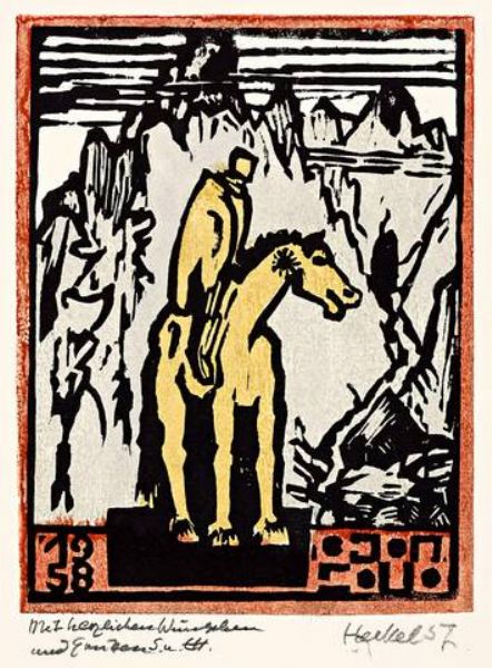 | REITER IM GEBIRGE / "CLOWN AM SPIEGEL" / "VOGEL UND TRAUBEN" / "FEIGENBLATT UND FRÜCHTE" / "AUFFLIEGENDER VOGEL" | |