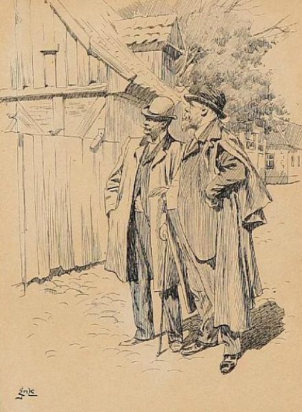 | Two men in a village street | |