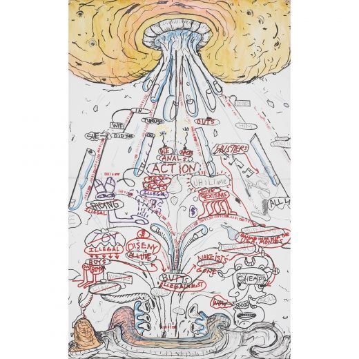 Pen ink, charcoal, graphite and rubberstamp on paper