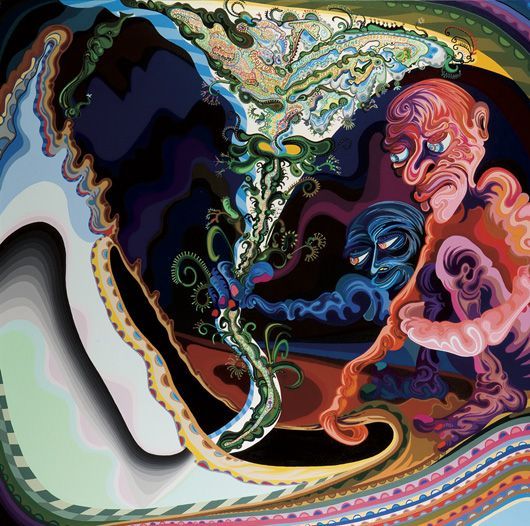Oil acrylic and felt-tip pen on canvas.