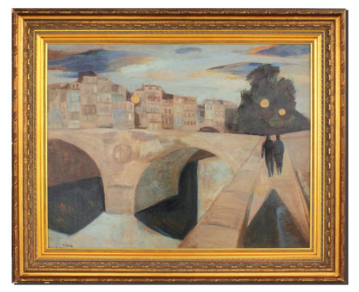 Nocturnal City Scene with Figures Walking Near a Bridge