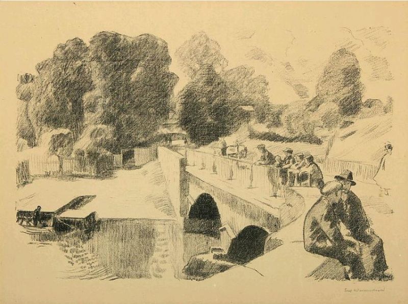 | People on a bridge. Signed Erik Werenskiold | |