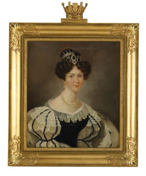 | Porträtt av kronprinsessan Josefina i svenska hovdräkten - midjebild | |