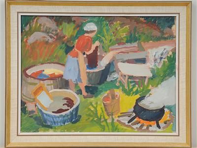 Trädgårdsbild med tvätterska