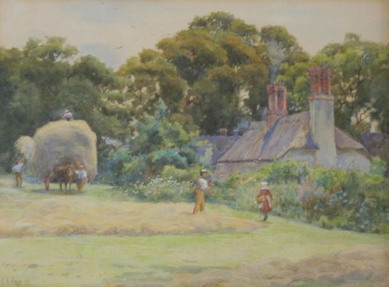 HAYMAKING NEAR ALLERFORD, SOMERSETSHIRE