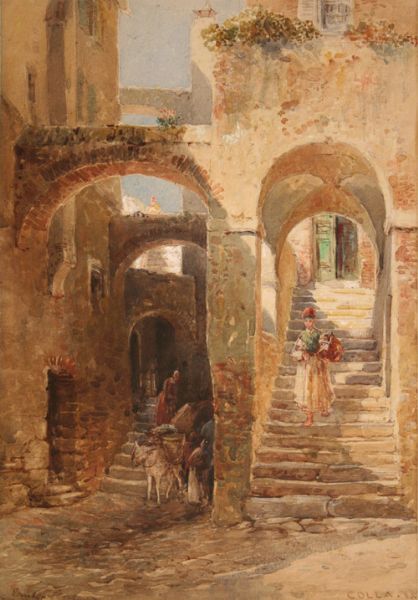 'Colla' (View of an Alley with Donkey and Lady walking down Steps)