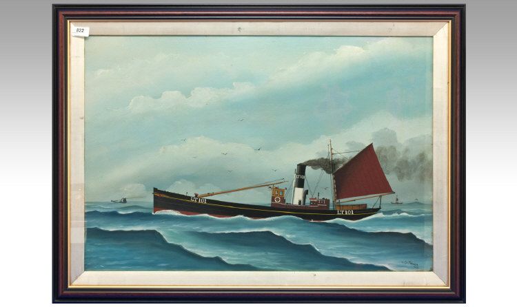 Ships Portrait Of The Lowestoft Trawler LT-101 At Sea Near Lowestoft Light Vessel