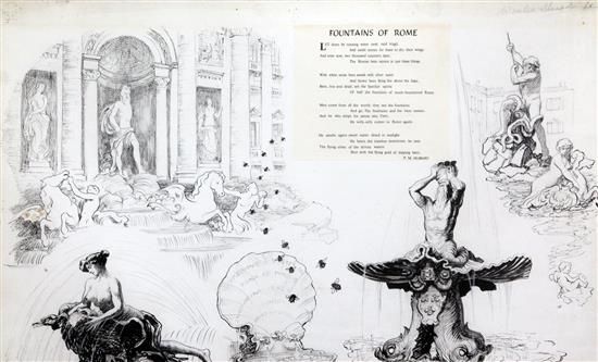 | Original illustration for Punch magazine of 'Fountains of Rome' by P. M. Hubbard | |