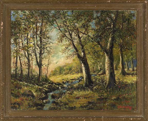 A Stream in a Tranquil Wooded Landscape