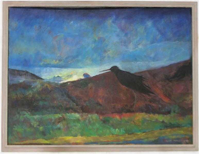 | "Solitude," a landscape at dusk with a bird in the foreground | |